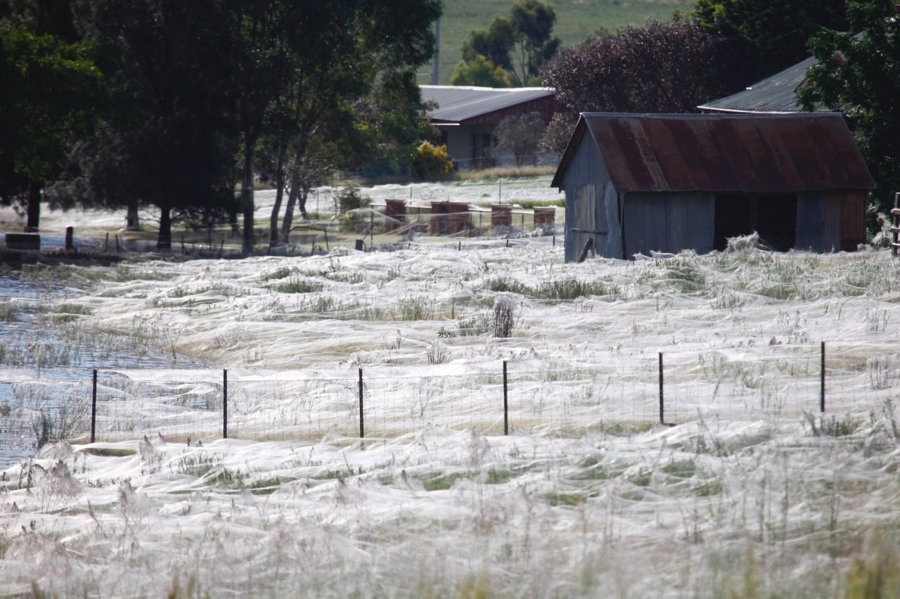 The Fields of Web is a very interesting phenomena that occurs due to the large gathering of spiders in an area, which takes shelter and starts webbing up their shelter. This happens after floods or other natural disasters where there’s plenty of water for them to sustain themselves on. They don’t cause any harm since they’re not poisonous but what’s really amazing about this phenomenon is how it looks like extremely tall grass covered with spider webs all over, which makes for some incredible optical effects if you view parts without much accumulation from far away. When viewing those sections with lots more accumulated then this causes highly contrasting views as well because sections without accumulations look nothing short of being completely white while others have enough buildup to cover entire fields so you can barely see through it. This makes for a very surreal sight to behold in person.