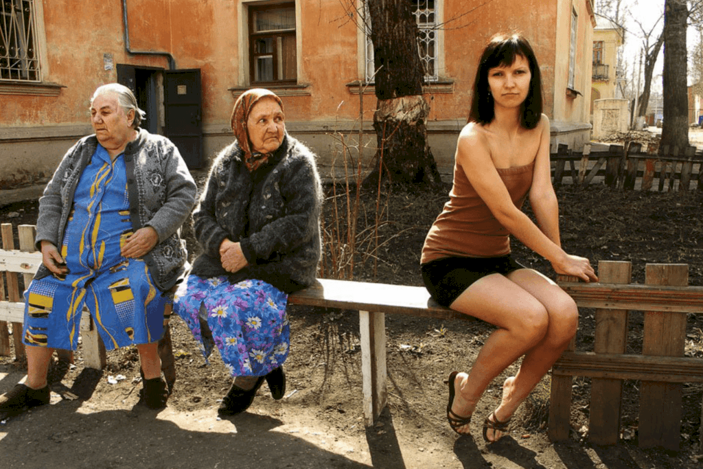 The disparity between generations in Russia has never been as profound as it is currently. She might have gone downstairs to engage in some reading, or just paused to take a breather on the bench.
